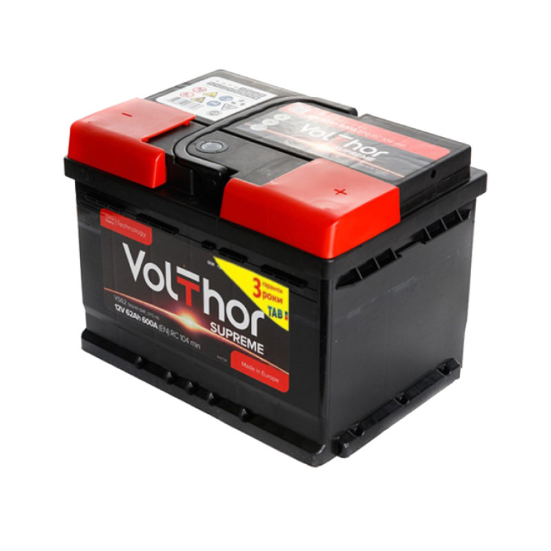 Акумулятор Volthor Supreme 54Ah 510A R+ — це високотехнологічний продукт від відомого європейського заводу TAB (Словенія). Ця серія розроблена спеціально для сучасних автомобілів з підвищеним рівнем енергоспоживання, де важлива стабільність роботи та висока потужність холодного пуску.