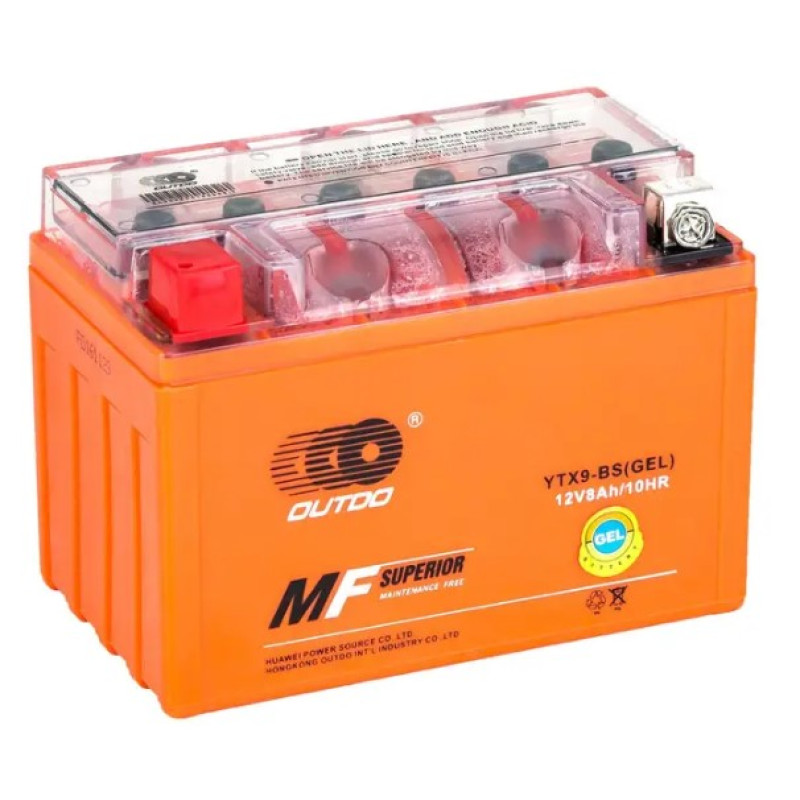 Outdo UTX9-BS GEL — це потужний гелевий акумулятор, розроблений спеціально для забезпечення надійного живлення різноманітної мототехніки: мотоциклів середнього та великого об'єму, скутерів, квадроциклів (ATV) та іншого активного транспорту. Ця модель використовує передову технологію GEL (гелевий електроліт), що робить її преміум-вибором для тих, хто цінує максимальну надійність та довговічність.