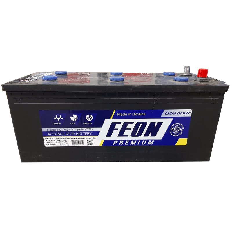 Акумуляторна батарея Feon Premium 200Ah 1400A L+ — це надпотужне рішення для вантажних автомобілів, автобусів та важкої спецтехніки. Дана лінійка виготовляється на заводах міжнародної корпорації ISTA (Україна) за найвищими стандартами якості. Модель Feon Premium є повним технологічним аналогом преміальної серії ISTA 7 Series, що гарантує максимальну продуктивність у найсуворіших умовах.